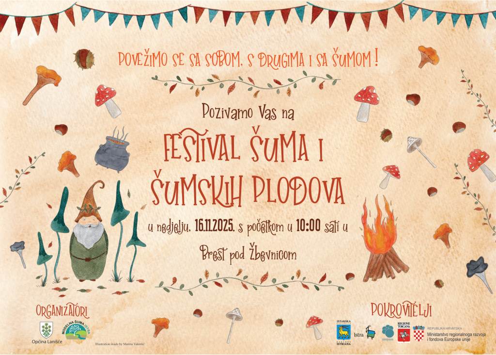 Ovim vas putem pozivamo da posjetite Festival šuma koji se ove godine održava u nedjelju, 23. studenoga 2025. godine, u Brestu pod Žbevnicom, od 10:00 do 23:30 sati.