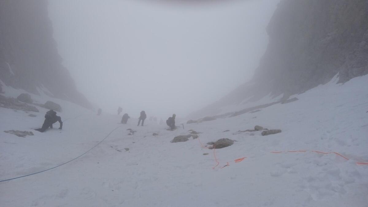 Naredni vikend, 22.01. i 23.01.2021. u masivu Karavanki na području Zelenice u Sloveniji održan je praktični dio modula. Započet je u kontroliranim uvjetima poligona ispod Vrtače (2181 m) gdje su polaznici uz stručno vođenje i demonstraciju imali priliku doživjeti iskustvo sigurnog napredovanja s cepinom i derezama na različitim nagibima padine, u postupcima kontroliranog zaustavljanja u incidentnim situacijama proklizavanja te u kretanju praktičnim navezivanjem i osiguravanjem planinarskim užetom. Na povratku na noćenje u Dom na Zelenici održana je izazovna vježba orijentacije u realnim zimskim uvjetima. Praktični dio modula zaključen je sljedeći dan ranom grupnom turom u idealnim uvjetima na Veliki vrh Begunjščice (2060 m) i to usponom kroz planinarski vrlo zanimljivu Centralnu grapu te silazom kroz Šentanski plaz.